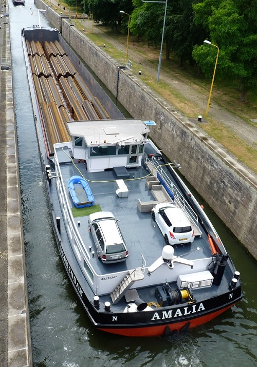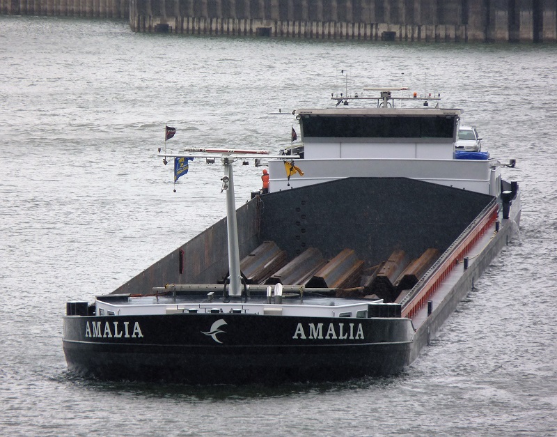 Amalia , 110,00 x 11,45 x 3,66 , 3225 ton , Bouwjaar 2011 , Werf Jialong Shipyard in Nanjing ( China ) en Gebr. Jooren in Werkendam ( Nederland ) , 1800 pk ABC en 571 pk Scania - Veth-Jet boegschroef , eigenaar Seolto CV in Werkendam , ENI 02333547