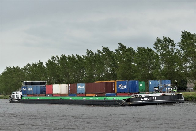 Nadorias , 110,00 x 11,45 x 3,70 , 3275 ton , Bouwjaar 2009 , Werf Tjialong Shipyard in Nanjing (China ) en Markerink in Lobith-Tolkamer ( Nederland ) , 1700 pk Mitsubishi en 2 x 485 pk Scania Oudakker boegschroef , eigenaar Vof. Serudo (D. & S. van der Meer) in Harderwijk , ENI 02331393