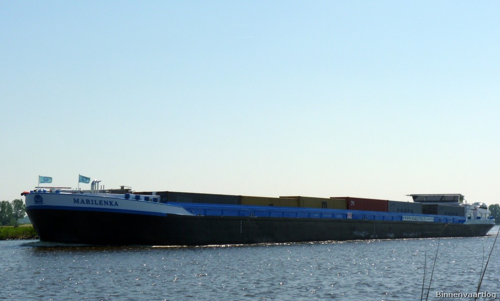 Marilenka , 110,00 x 11,45 x 3,36 , 2900 ton , Bouwjaar 2007 , Werf Stig Jiangsu Sugang Shipbuilding in Yizheng ( China ) en Hasselt BV in Hasselt ( Nederland ) , 1836 pk Caterpillar en 608 pk Caterpillar Verhaar Omega-Jet , boegschroef , eigenaar S. Kiers Vof in Zwolle , ENI 02329473