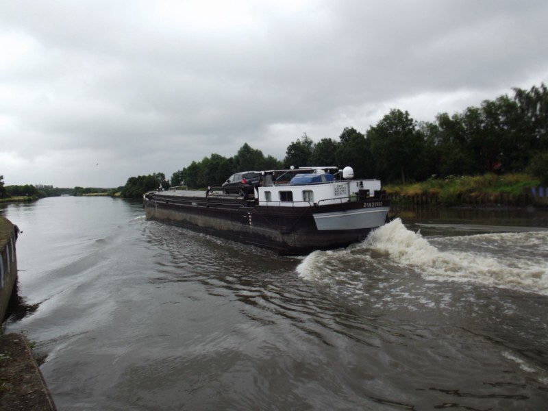 EROS repart à Zeebruges. Il faut compter une grosse journée de navigation pour y arriver : en partant de l'usine à 6h30 le matin, ils s'amarrent le soir vers 21h30 au port de chargement. A noter qu'ils quittent l'usine une fois vides en marche arrière, y compris le passage de l'écluse de Marquette, jusqu'à ressortir dans la Deûle. Et pour passer les ponts de la Marque canalisée, ils ballastent dans leurs cuves à mélasse avec de l'eau propre traitée par l'usine.