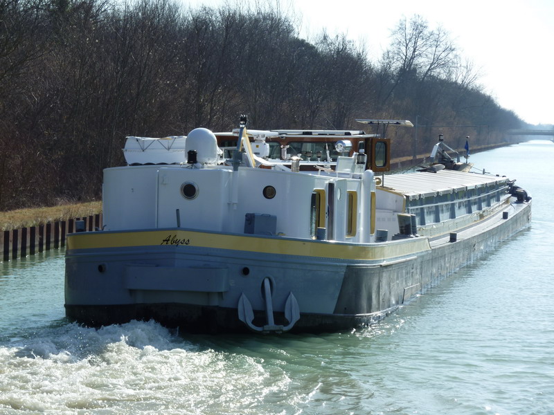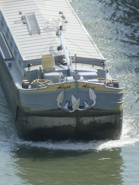 Abyss , 38,85 x 5,08 x 2,36 , 351 ton , Bouwjaar 1957 , Werf Michot Fréres in Thuin ( Belhie ) , 230 pk Detroit , ex Petite Reine , ex Isotope , eigenaar C. Levèvre in Antoing , ENI 06001608