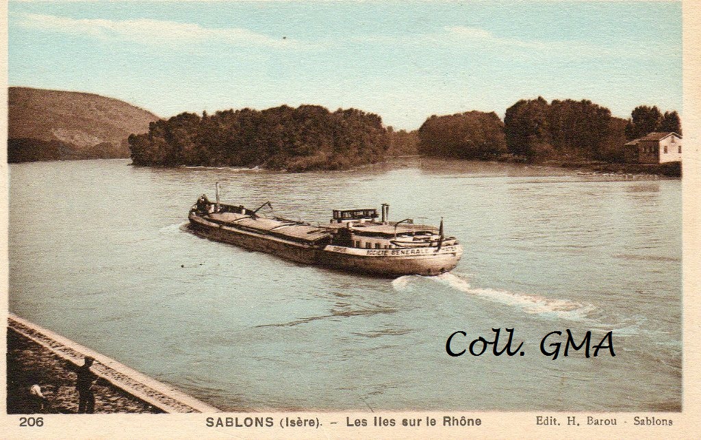 Par contre, je situe ce bateau montant à l'amont du pont de Sablons (sur le Rhône), les maisons sont toujours là.