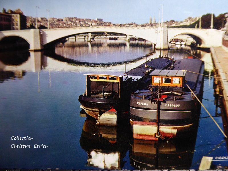 J'ai noté que le bateau de gauche était le RENE .Carte postale semi moderne prise à Lyon dans les années 70