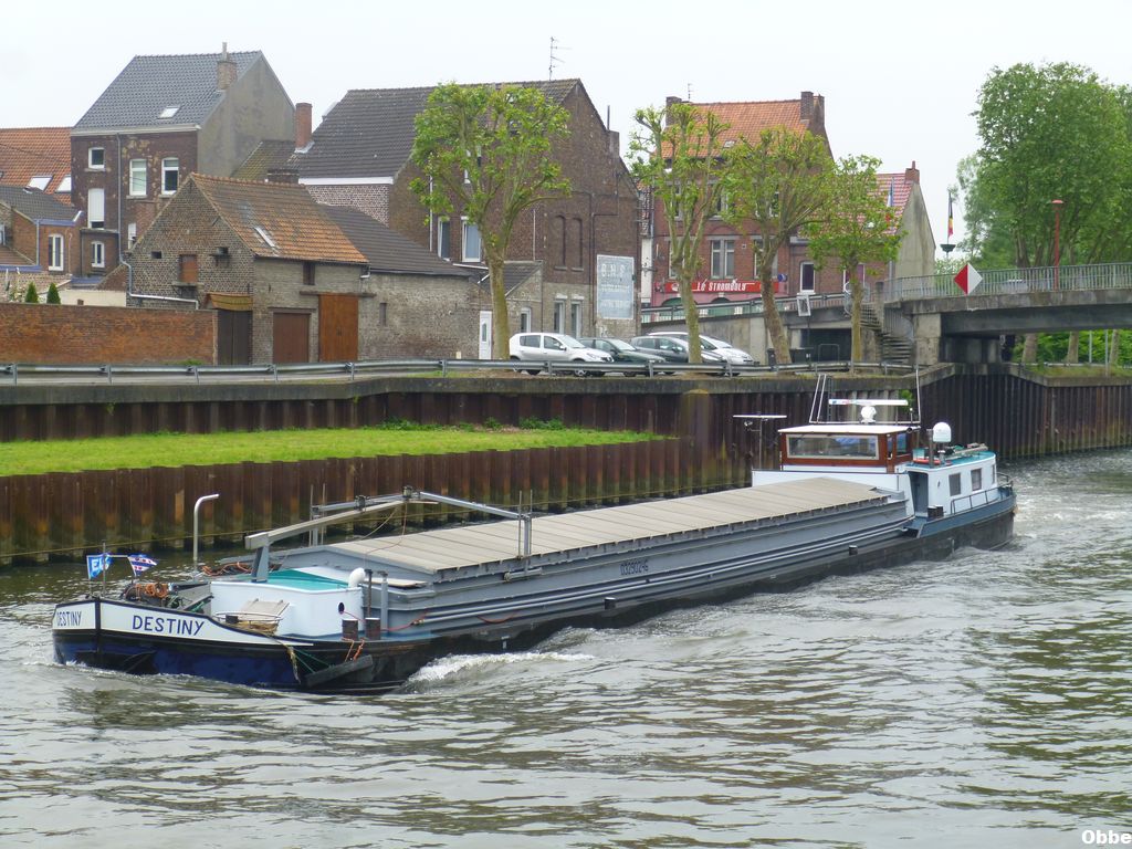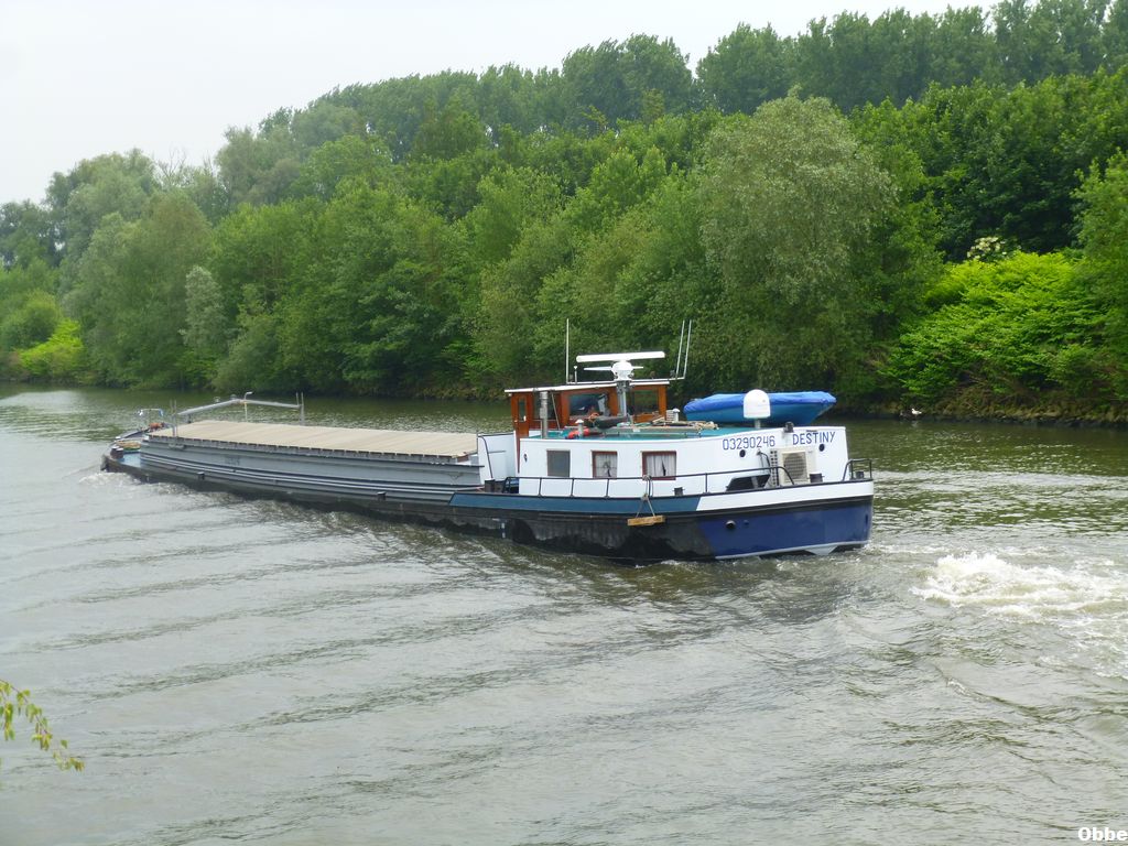 Destiny , 38,79 x 5,07 x 2,53 , 347 ton , Bouwjaar 1963 , Werf R.de.Winter in Boom ( Belgie ) , 265 pk Cummins en 100 pk DAF boegschroef , ex Corina , ex Sophia , ex Chris M , ex Desperado , eigenaar J. Kamstra in Alkmaar , ENI 03290246