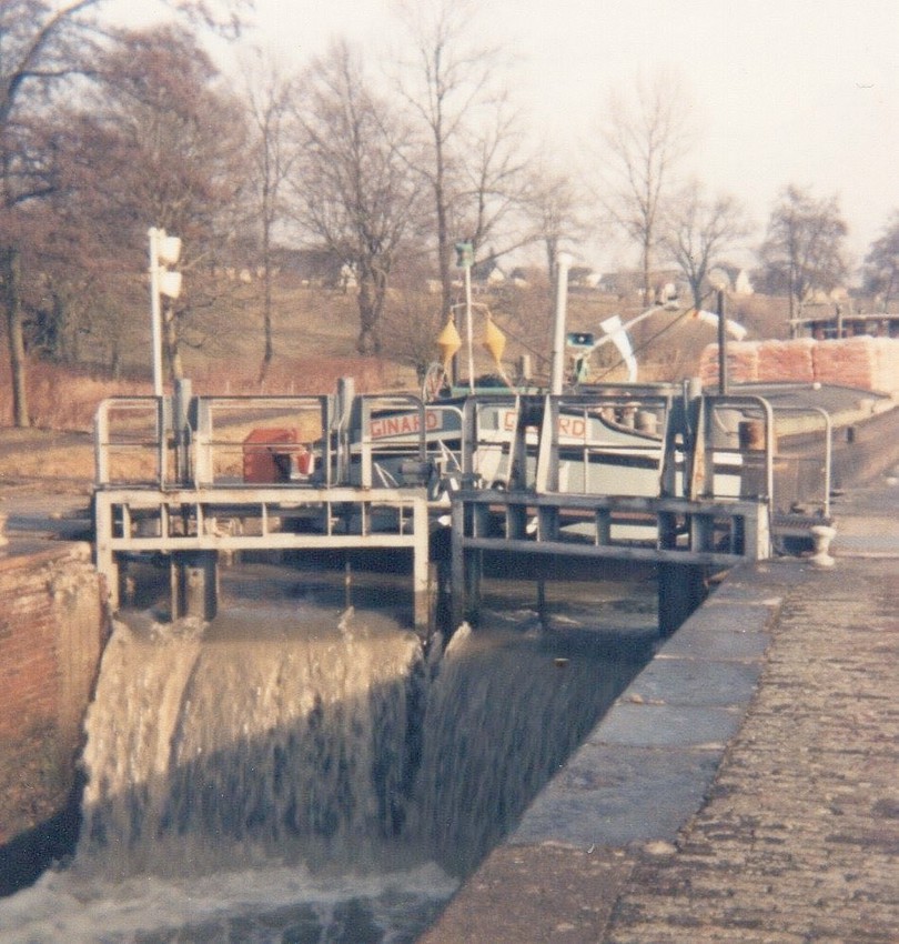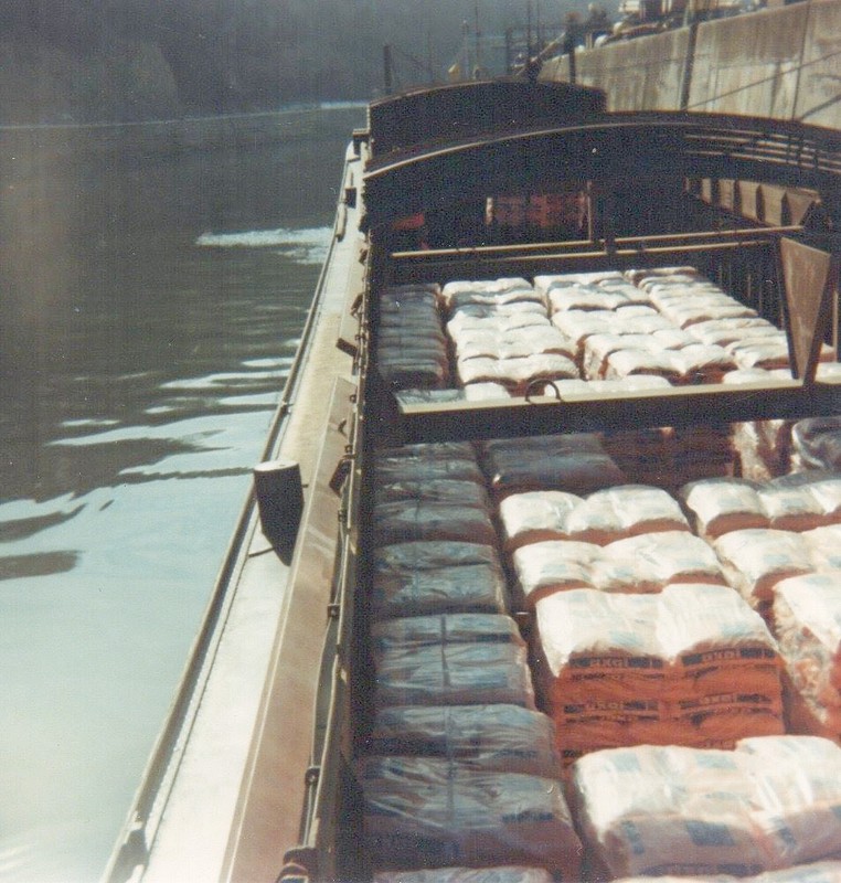 - à Jemeppe-sur-Sambre et sur le canal de la Sambre à l'Oise, à Étreux (02), devant les portes de l'écluse n°5 ou n°6 : ce voyage-là, il avait chargé des pastilles de sel pour adoucisseur d’eau en sacs, de Jemeppe-sur-Sambre pour Gennevilliers et pour prendre du tonnage il avait comblé, il avait 260 ton et il était à peine à 1m80 avec ça