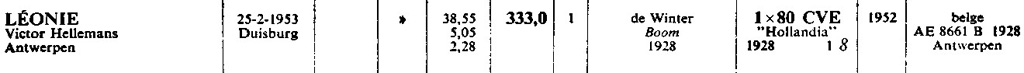 LEONIE a été acheté, probablement à la fin des années 1990, par l'acteur David (« Poirot ») Suchet, raccourci et transformé en bateau habitable, puis amené à St Katharine's Dock, à Londres. LEONIE a été vendu en 2019 et est resté au même endroit avec son nouveau propriétaire, Stephen Bernhard.