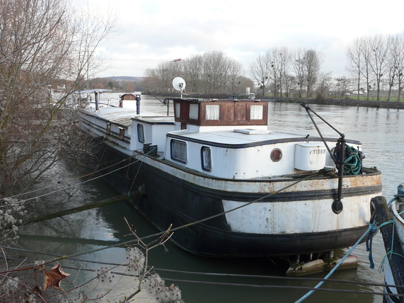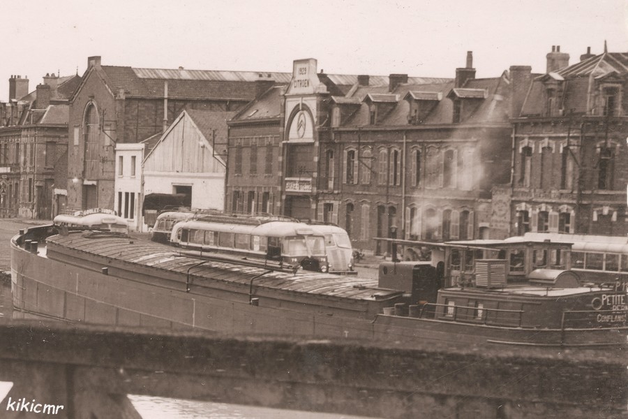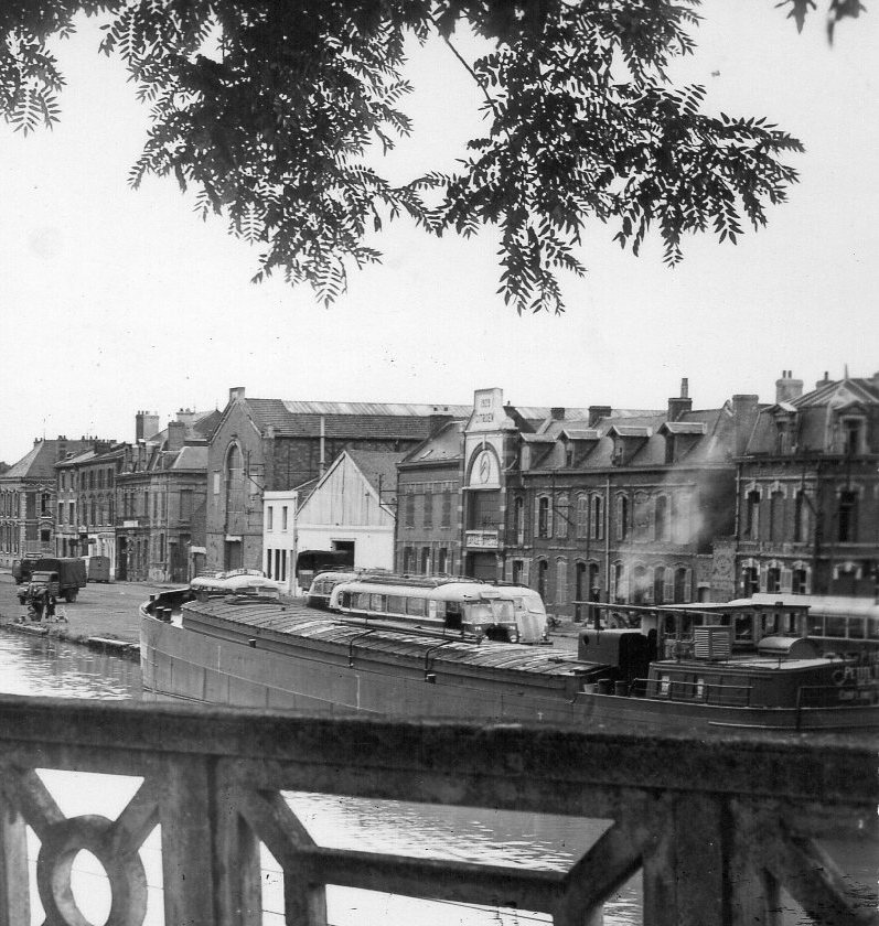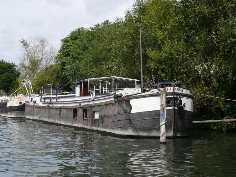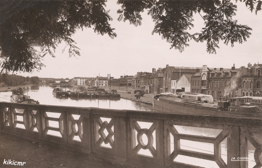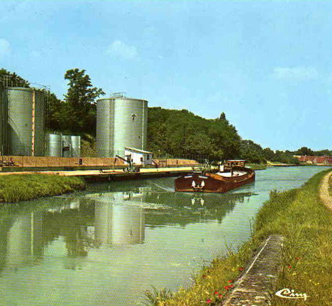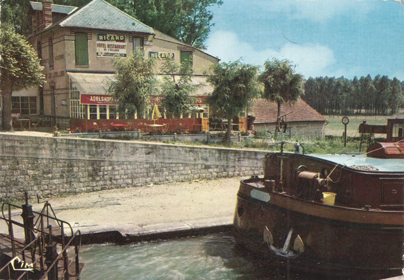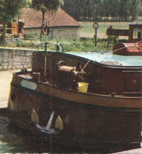 Puis je pense à une autre carte postale d'Amilly, que Guy a posté sur le forum, et qui ressemble un peu. Je la retrouve, elle est ici. On y voit le VIOLETTA entrant dans l'écluse, montant et chargé. On peut se dire : tiens, ça correspond ! C'est peut-être une de ces séries qu'on trouve parfois, l'éditeur qui choisit de publier plusieurs photos du même sujet... Ces séries que, justement, Guy apprécie particulièrement.