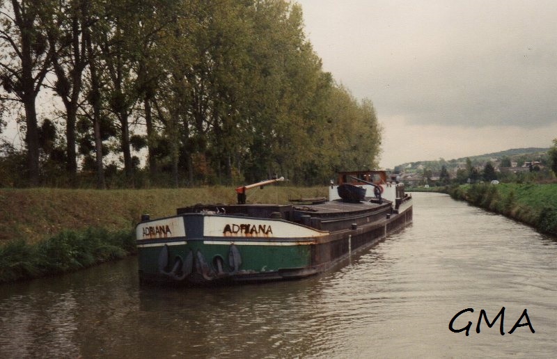 avec une photo du canal d'Heuilley / entre Champagne et Bourgogne / de la Marne à la Saône sur laquelle on voit un bateau :