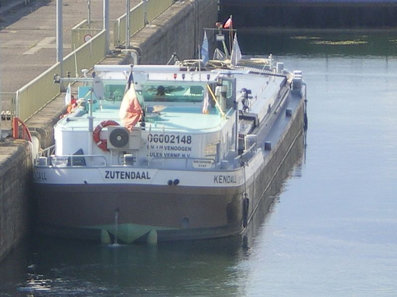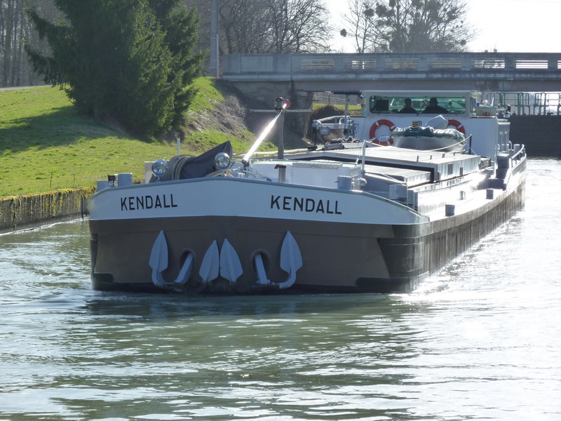 le Kendall immatriculé 6002148. Ici à Hasselt "Kanaal Kom" darse sur le canal Albert en février 2009 . La devise est forgée sur les fargues mais les lettres étaient peintes en blanc.