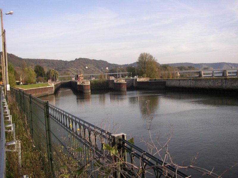 y a une petite ecluse de 38 metres et un deversoir d enterré.a une epoque ils parlaient d y faire une grande ecluse mais avec les idées le financement n a jamais suivi parce qu il n y a jamais eu de decision de prise.