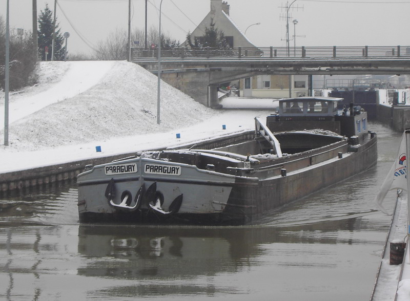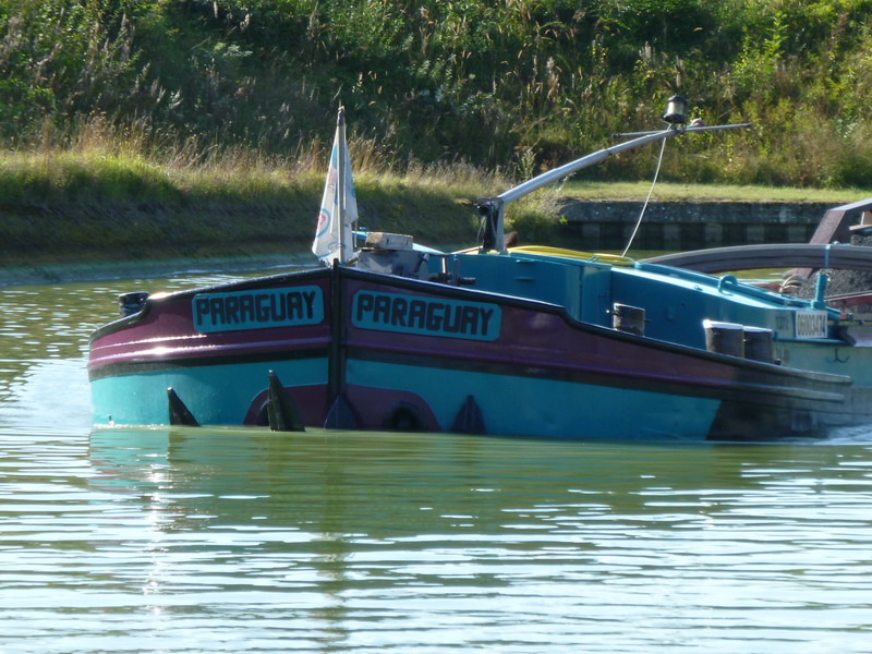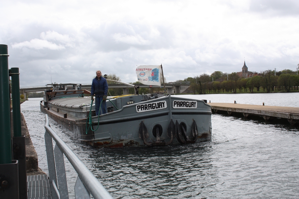 Le PARAGUAY entre dans l'écluse de Cannes-Ecluse, je ne peux pas mieux faire que d'aller le saluer, et de lui attraper les cordes...