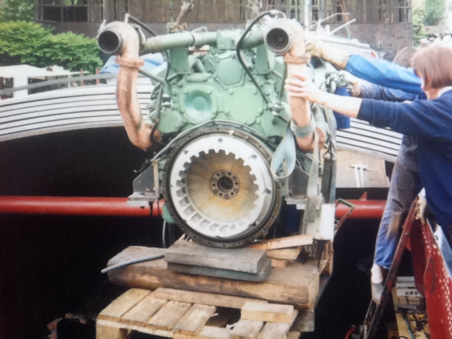 Je ne peux pas vous dire ou ce ancien bateau Belge était construit, je sais qu'il a un GM 6V-71, et que celui qui a voulu le transformer en bateau-logement a dépensé beaucoup d'argent pour fair une construction escamotable sur la partie avant de la cale, pour pouvoir disposer de 2 étages à l'arrêt. Finallement pas très practique car endessous tout doit être dégagé pour permettre à l'étage supérieur de décendre.