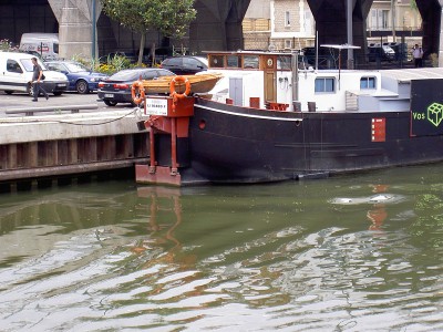 c'est un bateau-entrepôt qui se déplace sur la Seine avec sa flotte de triporteurs électriques. Un service "éco-responsable" tout à fait novateur et réservé aux professionnels.