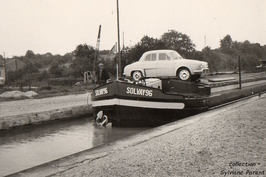 SOLVAY 96 dans une écluse de la vallée de 70, avec une voiture sur l'avant, c'est rare sur un Solvay :