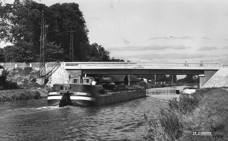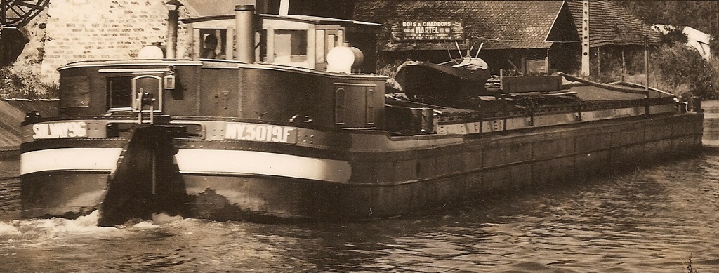 A la sortie du chantier de Vitry, en 1963, il vient de voir sa cabine modernisée et s'est fait poser une conduite assistée sur son 30cv ; on remarque derrière le roof le coffrage qui abrite le système hydraulique, surmonté d'un garde de corps. La photo a été prise à Nancy, juste après le port de Malzéville bateau montant, on voit la porte de la cale sèche du service navigation :