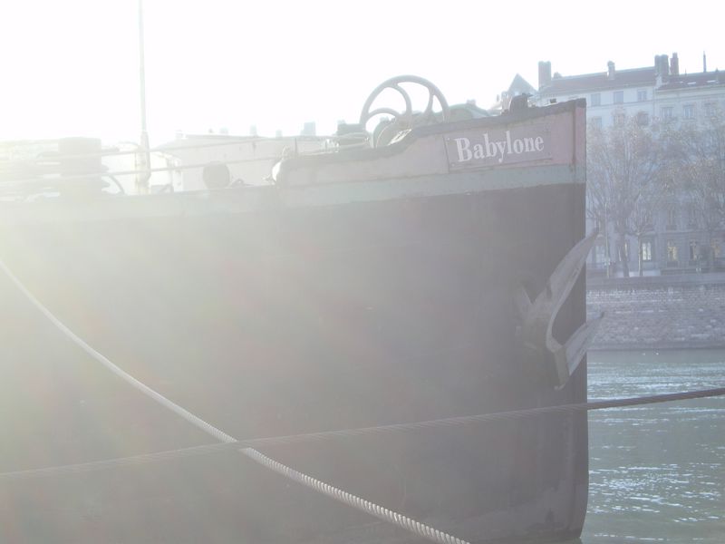 et une photo que j’ai prise en 1982, de la passerelle piéton qui enjambait le canal entre le chargement de soude en vrac et l’ancien chargement des cylindres de soude caustique (elle fut démontée début 1990), et que j’aime particulièrement, qui allie la flotte et l’architecture des installations, le