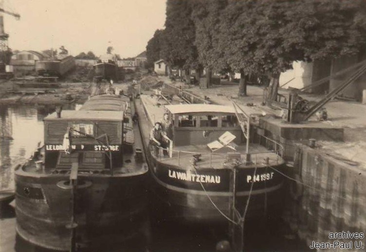 L'autre bateau est LE LORRAIN, tous les deux appartiennent à la C.A.N.A.L. (Compagnie Auxiliaire de Navigation d'Alsace-Lorraine) ; les photos nous ont été transmises par Jean-Paul U., dont les parents ont conduit les deux bateaux.