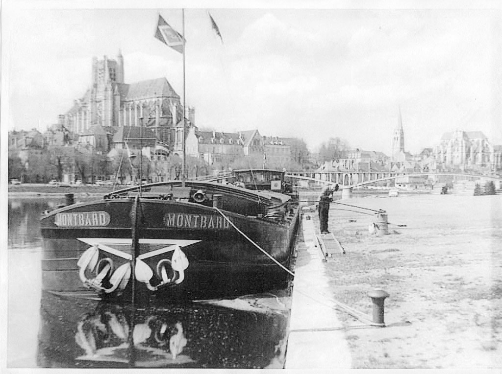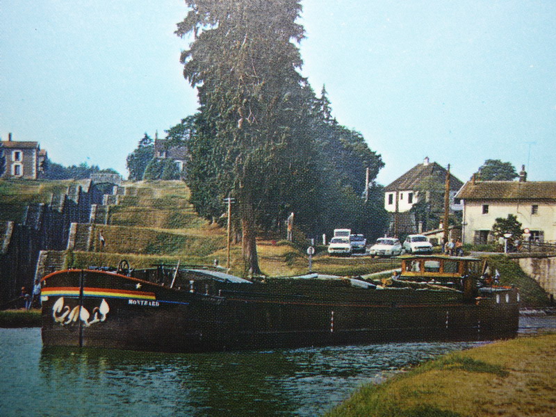 MONTBARD dans une série de photos conservée aux archives municipales de Besançon, prise en juillet 1958 par le photographe Bernard Faille (carte de presse n°11430) : "reportage port fluvial et péniche avec visite d'enfants" ; il est sur le Doubs, à Besançon, et va entrer sous la voûte de la Citadelle (Tarragnoz)