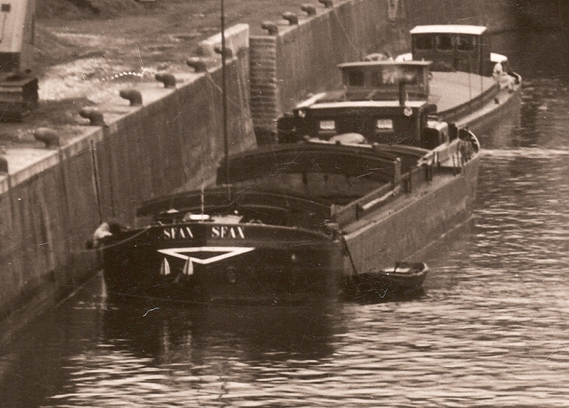 Le seul dont j'ai le détail et une photo sur un cahier du musée de la batellerie est l'ARROMANCHES 53m sur 7,2m, de 1944