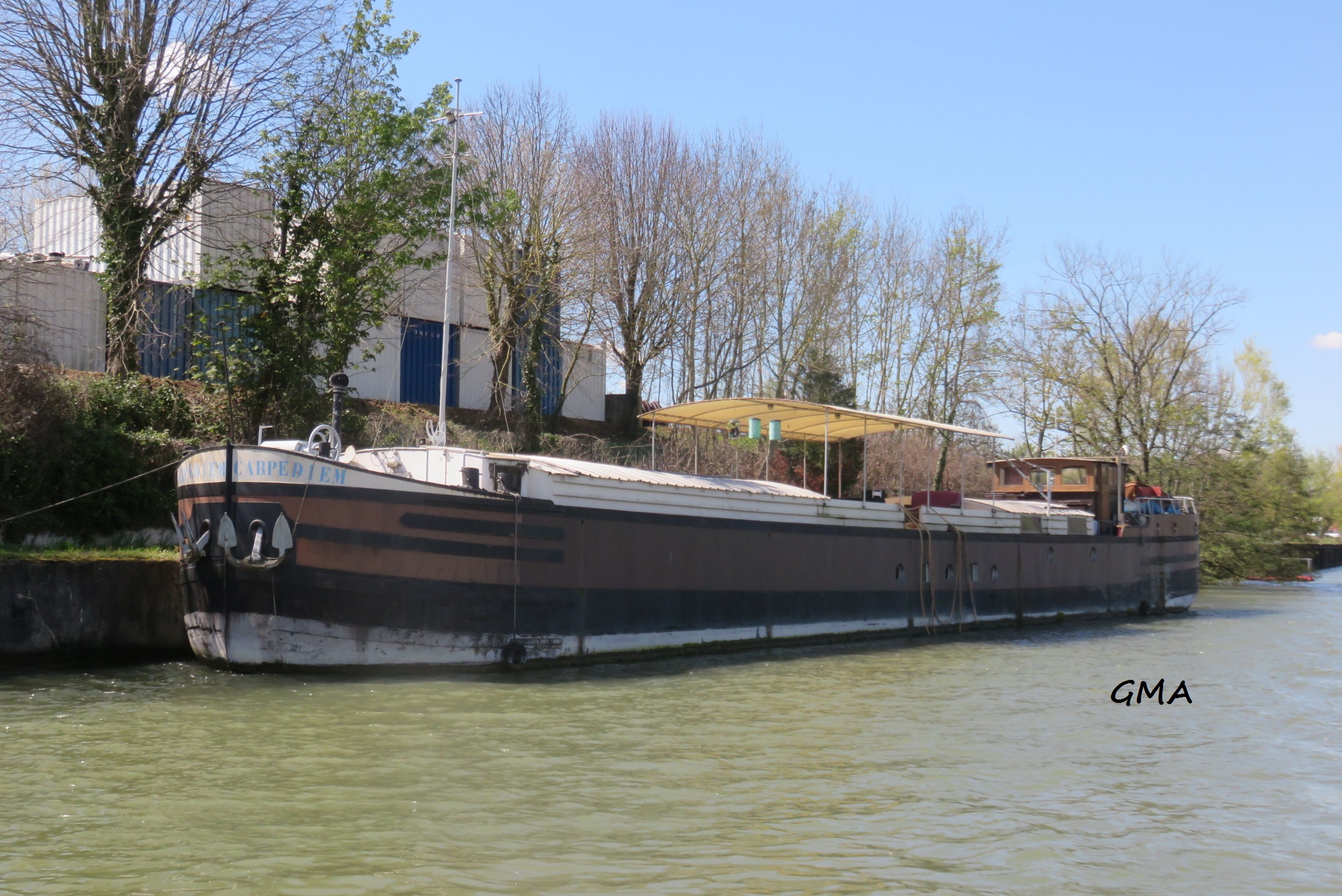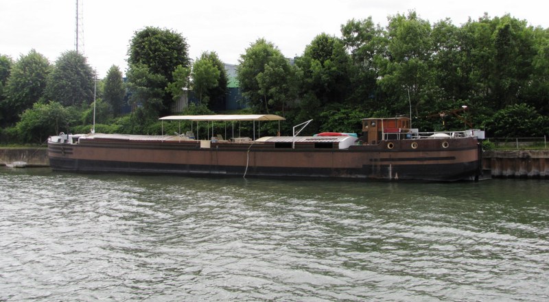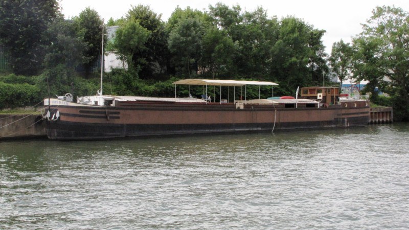 « Arrivée du bac avec une péniche au niveau du canal aval.