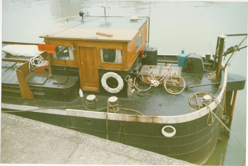 Je ne suis pas sûr si c`est une peniche qu`on avait motorisée peut-être avant 60 ans ou si c`est une peniche construite avec un moteur.