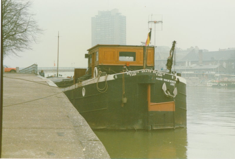 On peut lire sur l`arrière de la peniche: BR21987B, T366, et comme batelier ALAIN VAN DE SCHOOR, LIÈGE.