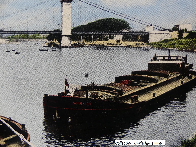 Nouvelle vue pour ce bateau avec cette cpm de Port à l'Anglais. Il se nomme NORMANDIE avec ses plats bords très larges bien reconnaissables et une largeur annoncée sur le triangle à l'avant de 6m67. Christian