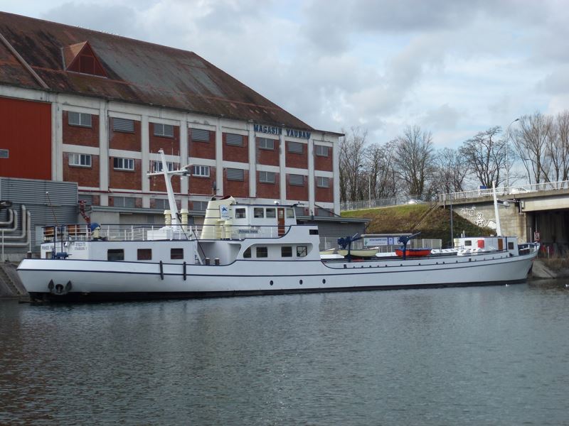 Voici le bateau-école de la section "transport fluvial" du lycée Émile Mathis de Schiltigheim, amarré à Strasbourg :