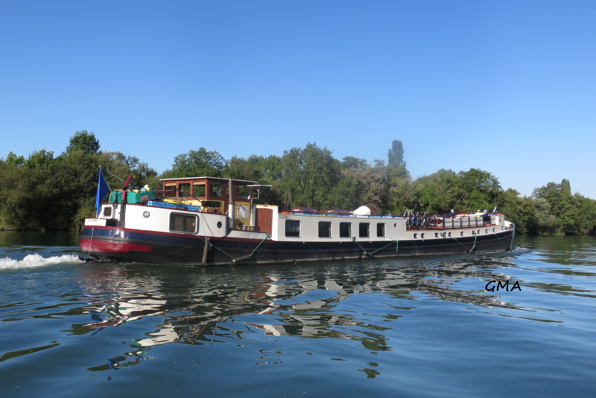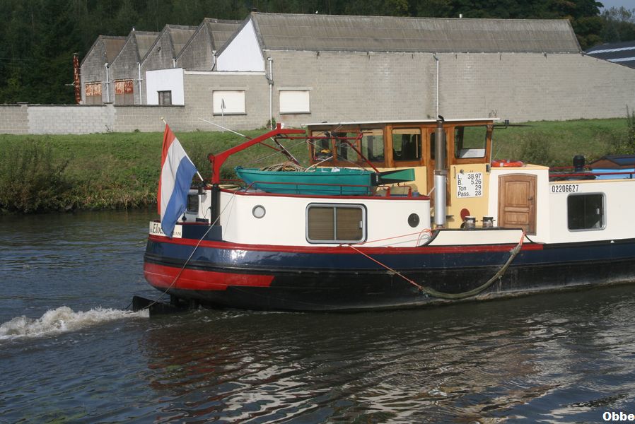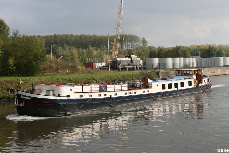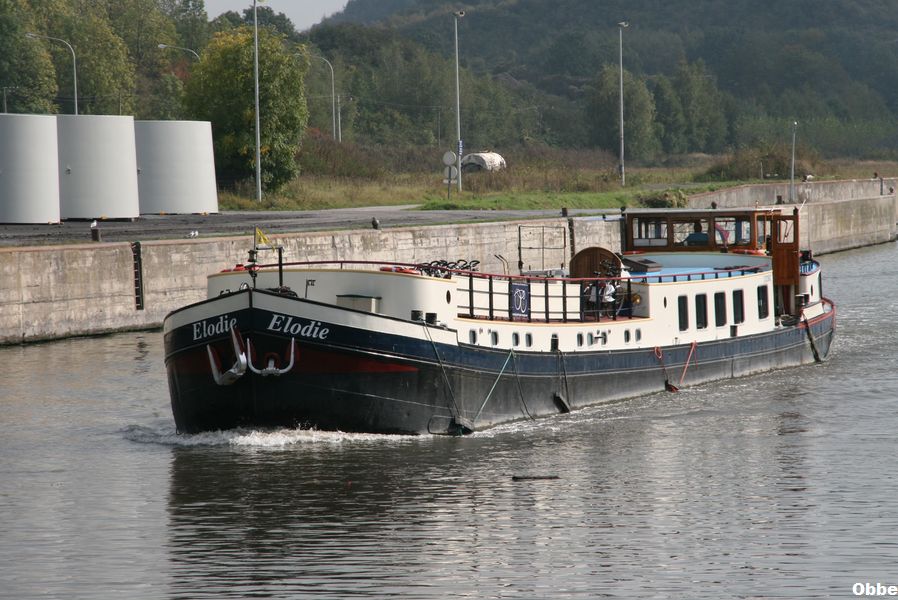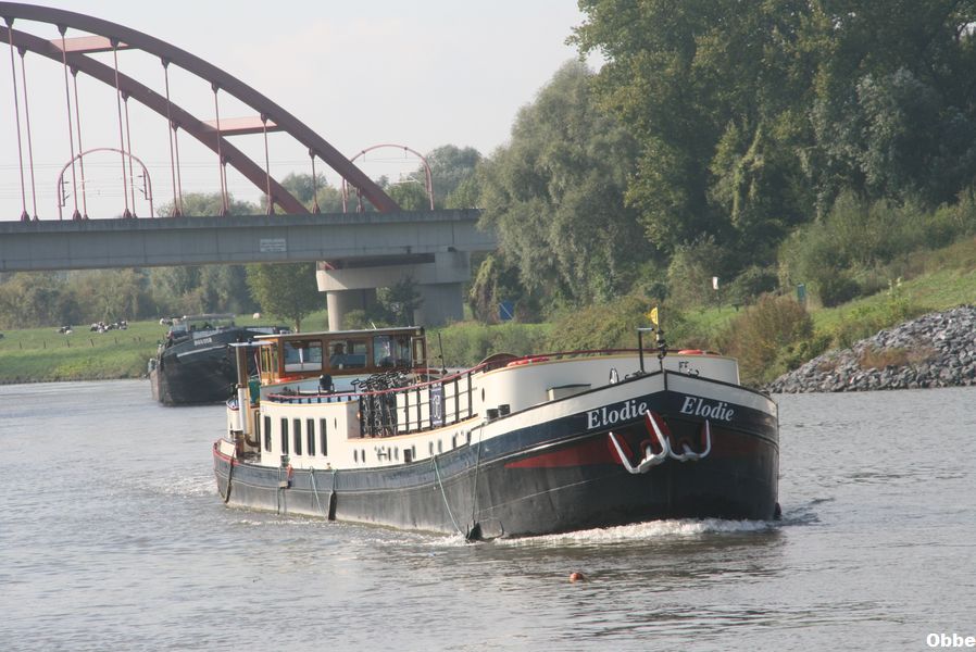 Elodie , 38,97 x 5,28 x 1,00 , 172 ton , Bouwjaar 1934 , Werf Smit & Zn in Foxhol ( Nederland ) , 188 pk DAF , 28 passagiers , ex Animo , ex Quo Vadis , ex Alja II , ex Eos , ex Elodie , eigenaar M. Meeuwessen in Amsterdam , ENI 2201653