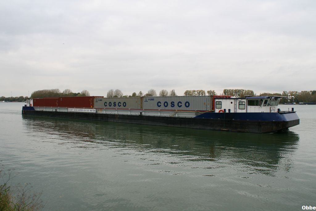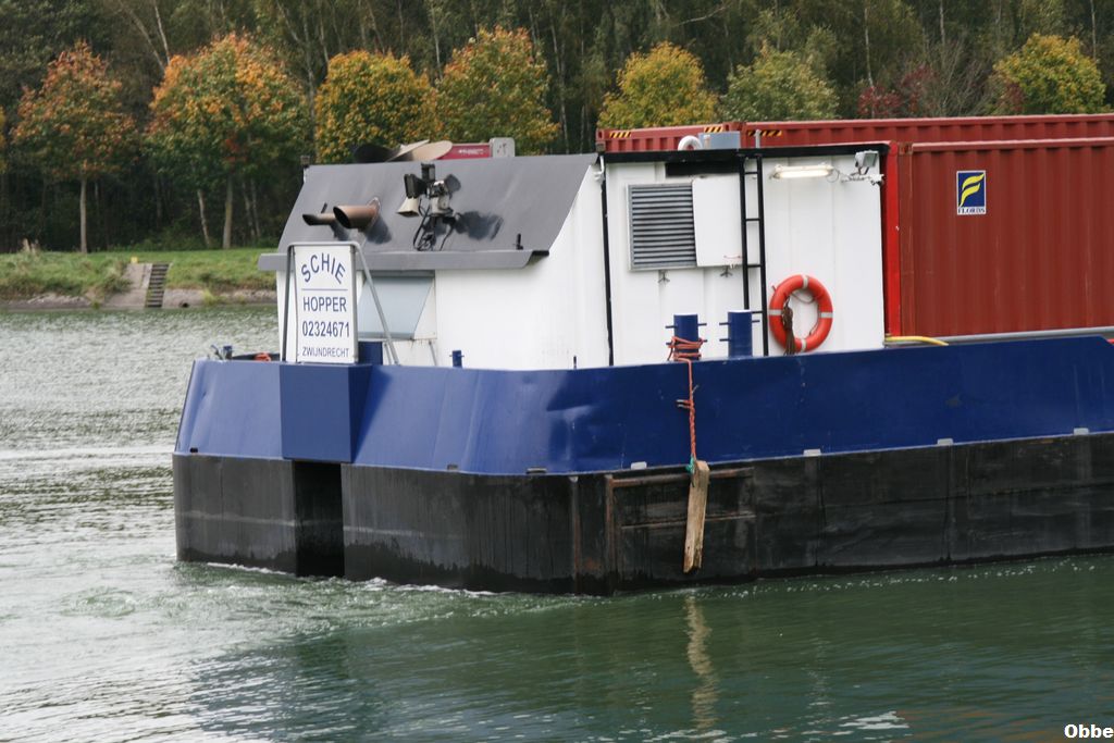 Schie Hopper , 63,00 x 7,03 x 2,50 , 848 ton , Bouwjaar 2000 , Werf Harlingen in Harlingen ( Nederland ) , 638 pk Scania , ex Versteijen , ex Gemini , ex Amer Hopper , ex Regge Hopper , eigenaar Mercurius Scheepvaart in Zwijndrecht , ENI 02324671