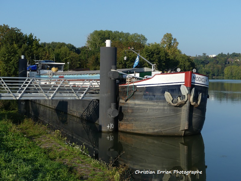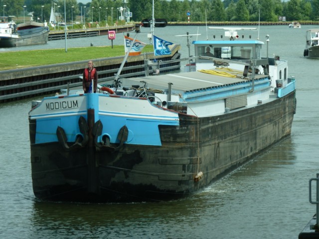Modicum , 38,97 x 5,05 x 2,25 366 ton , Bouwjaar 1960 , Werf Peters BV in Dedemsvaart ( Nederland ) , 193 pk Caterpillar , ex Au Revoir , ex Cambio , ex Navigo , ex Medio , ex Gym Tonic , ex Pax , ex Mindanao , eigenaar H.Derks in Cuijk , ENI 01822894