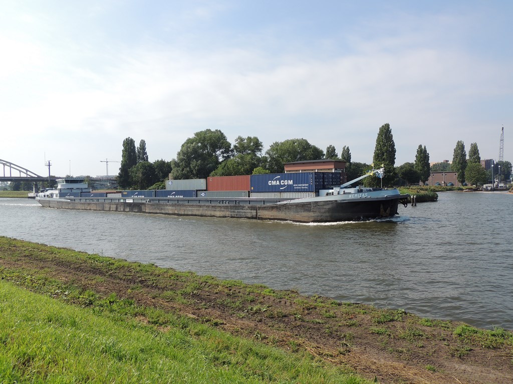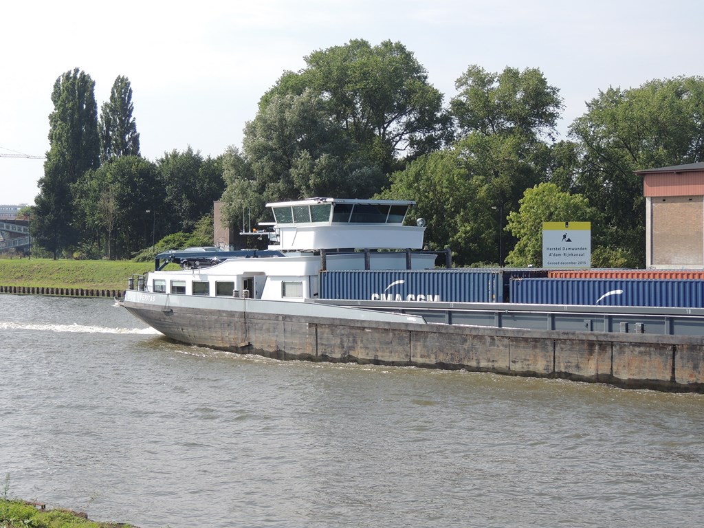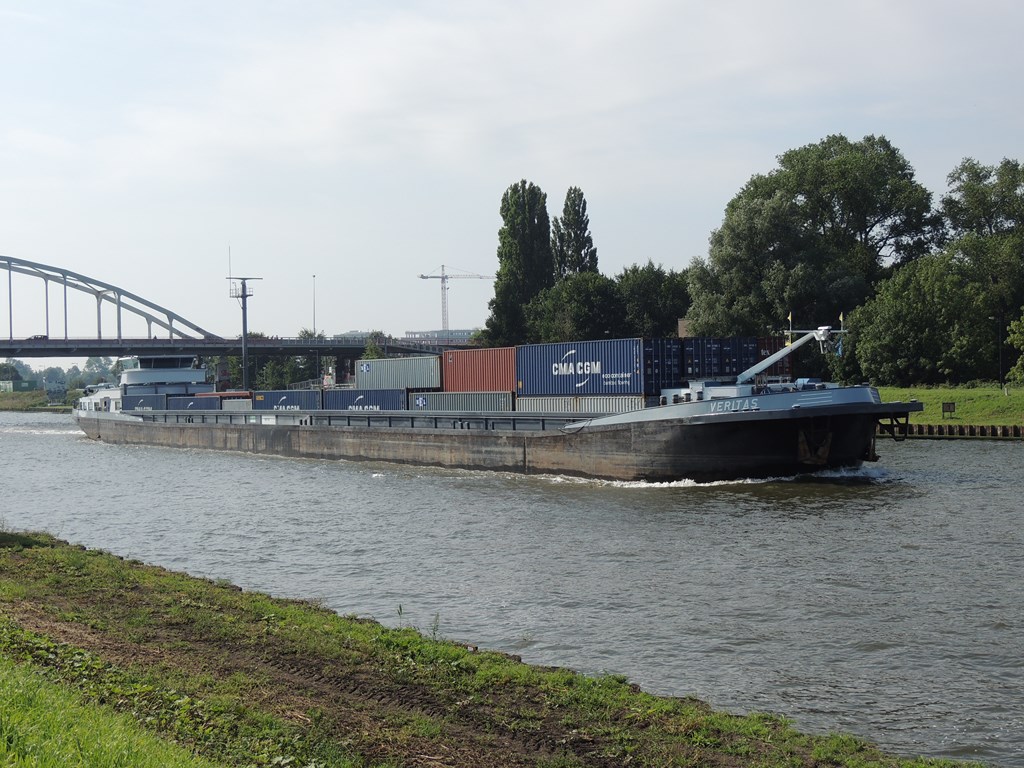 Veritas , 109,93 x 11,40 x 3,43 , 3010 ton , Bouwjaar 1986 , Werf Alblas in hendrik Ido Ambacht ( Nederland ) en Dolderman in Dordrecht ( Nederland ) , 2028 pk Caterpillar en 480 pk DAF Veth-Jet boegschroef , ex St.Antonius , ex Victor , ex Rean-L , eigenaar Vof Veritas in Harderwijk , ENI 02317734