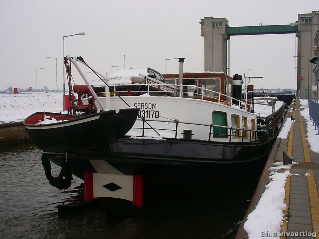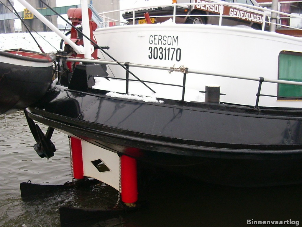Gersom, 49,87 x 6,33 x 2,46 , 471 ton , Bouwjaar 1939 , Werf De Hoop in Leiden ( Nederland ) , 230 pk Gardner , ex Joma , Adriana , eigenaar J.A.van.Tooren in Genemuiden , ENI 03031170.