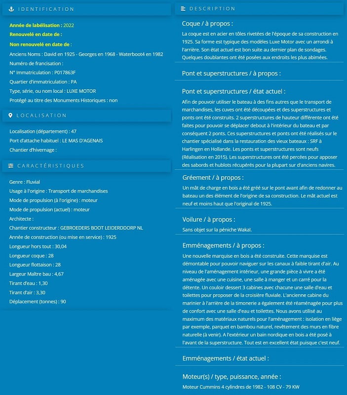 WAKAI - P17863F - a été labellisé PATRIMOINE MARITIME ET FLUVIAL en 2022.