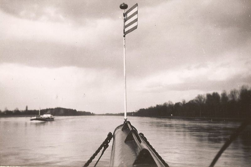Voyage dans l'espace (pas au bout du monde, quand même !), mais surtout, voyage dans le temps... Les photos qui suivent nous emmènent en effet sur le Rhin, dans les années 1930-1940, sur un remorqueur à vapeur, à roues à aubes, tirant son convoi de chalands sur le fleuve majestueux...