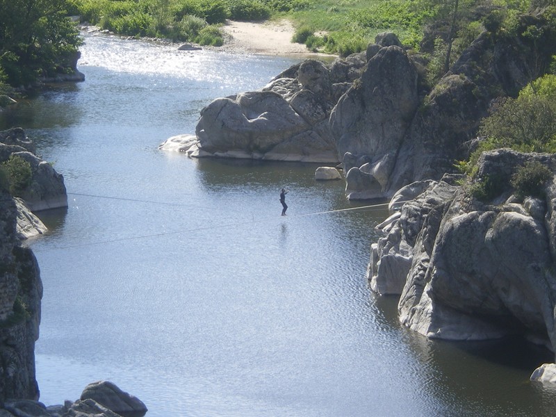 A la 3ème tentative, cette personne a réussi sa traversée (50 m environ) sans tomber à la flotte.