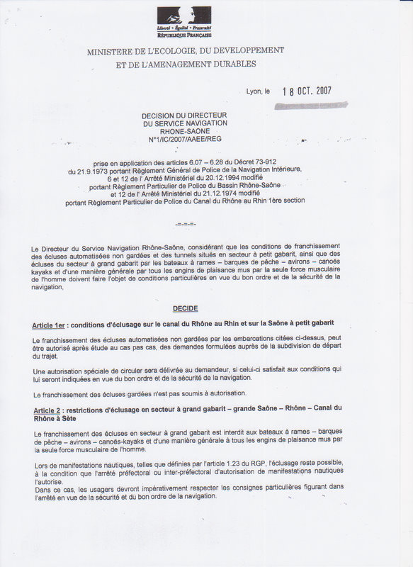 A savoir que l'on voit de plus en plus la brigade fluviale pour des controles. ( à certains endroits, elle n'est pas bien tendre )