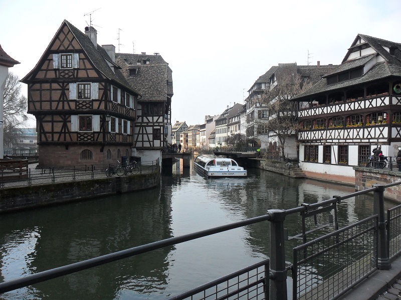 - Strasbourg - Le Pont du Faisan, unique pont tournant de la ville, ouvert pour laisser passer la vedette touristique.