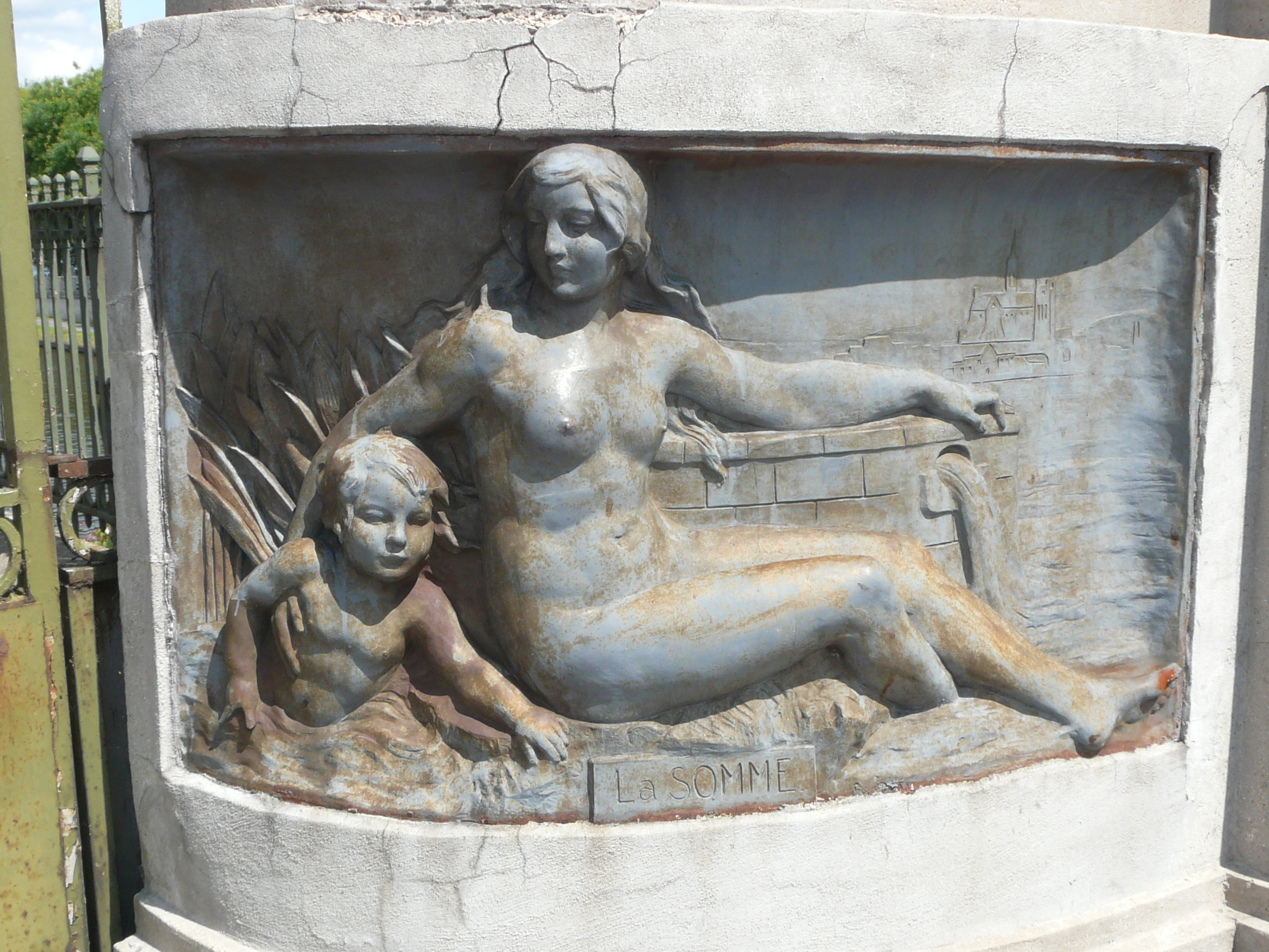 Sympa, l'allégorie de la Somme, Guy ! J'aime bien ces représentations de rivières en statues (j'en fais moi-même, mais en petit) et les collectionne. La Sauconna de Chalon et l'Ariège et Garonne de Toulouse sont très belles, ainsi que la statue de Sequana aux sources de la Seine. Si tu en connais d'autres, n'hésite pas à m'en faire part. Il y a la Saône et le Rhône sur le pont Kirchener-Marchand à Lyon, mais je n'en aime pas le style arts-décos, trop carré.