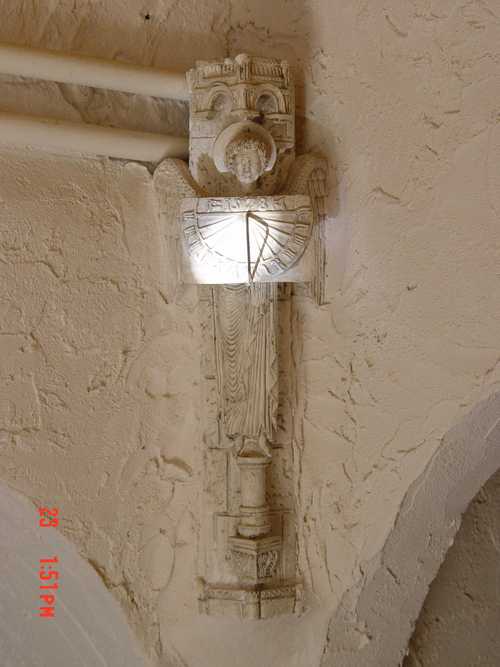 La lumière entre par ce petit "œil" situé au dessus de la fenêtre et à l'heure pile, le faisceau lumineux se pose sur l'axe du méridien.