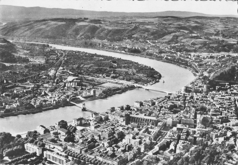 En face sur le Rhône et non le "vieux Rhône" comme certains l'appelle : les villages de Sablons et Serrières.