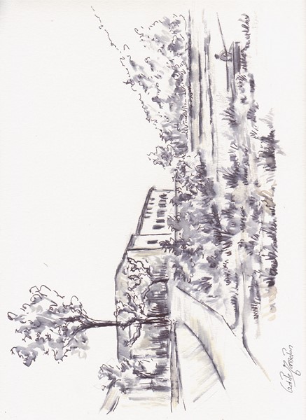 - Moly Sabata vu du Rhône. Croquis à l'encre d'Odile