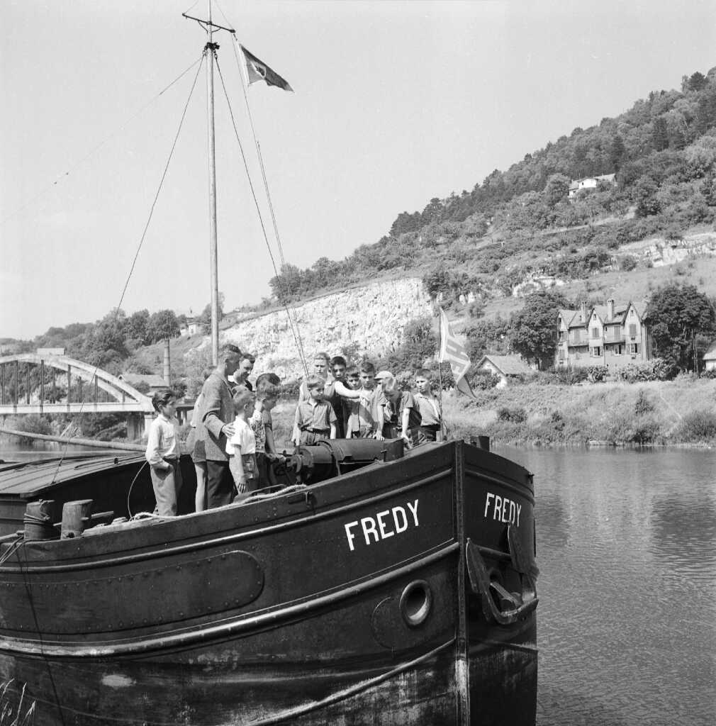 Voici le FREDY dans une série de photos conservée aux archives municipales de Besançon, prise en juillet 1958 par le photographe Bernard Faille (carte de presse n°11430) : "reportage port fluvial et péniche avec visite d'enfants" ; il est amarré sur le Doubs, à Besançon (Tarragnoz), devant lui, à droite, il y a l'entrée de la voûte de la Citadelle