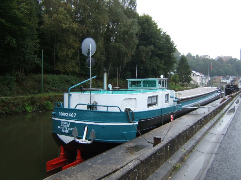 URSULA immatriculation 6002407 a été construit par le chantier Meijntjes à Anvers ( chantier en face de l'écluse Royer, Sint Anneke) Les bateaux, sauf celui-ci , porte souvent l'écusson du chantier sur l'étrave avec les lettres SLM =Scheepswerf Linkeroever (rive gauche) Meijntjes.