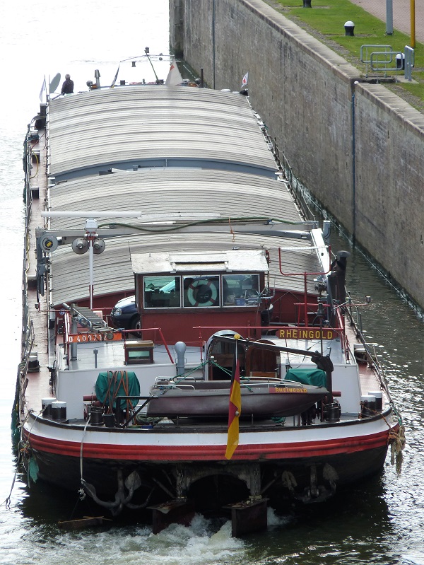 Rheingold , 79,95 x 8,18 x 2,40 , 1063 ton , Bouwjaar 1929 , Werf De Hoop BV in Lobith ( Nederland ) , 600 pk Deutz , ex Gluckauf , ex Rheingold , eigenaar D. Ackermann in Minden , ENI 04007120