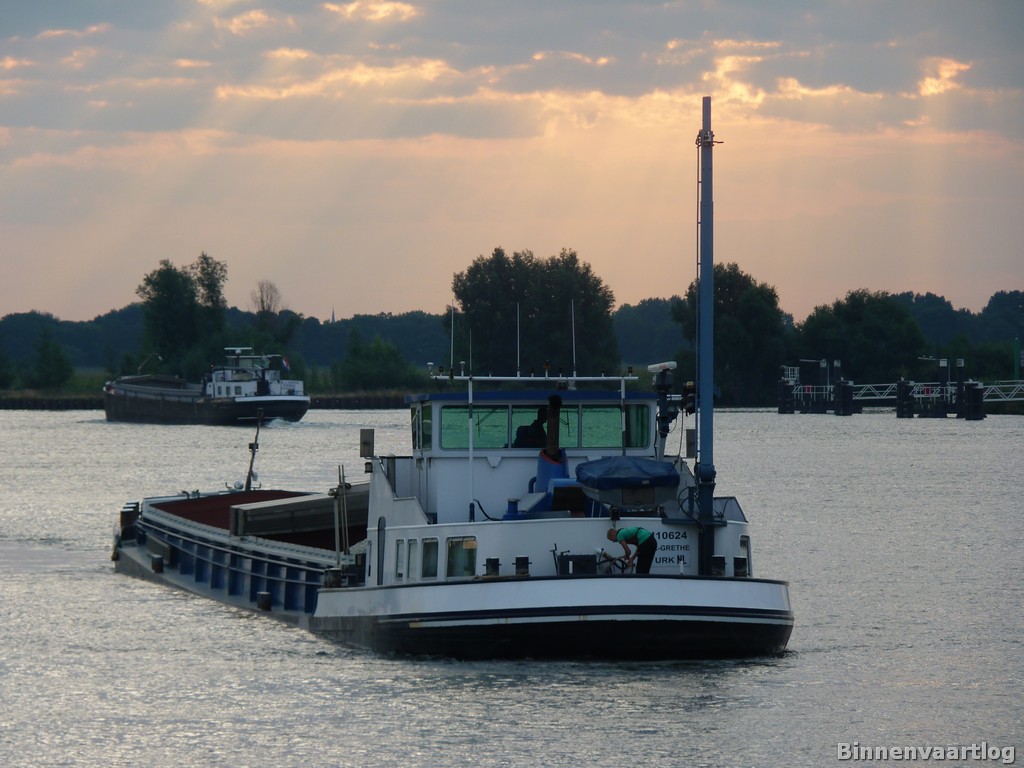 Mar-Grethe , 67,00 x 7,20 x 2,63 , 820 ton , Bouwjaar 1966 , Werf van Goor in Monnickendam ( Nederland ) , 730 pk Caterpillar en 300 pk DAF boegschroef , ex Gerjo-P , ex 4 x Favoriet , eigenaar Mar-Grethe Scheepvaartonderneming in Urk , ENI 03110624