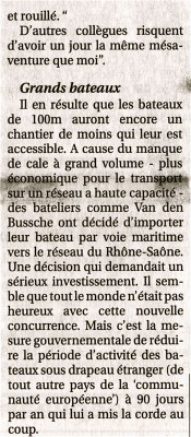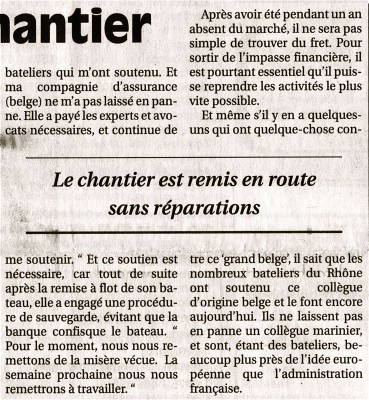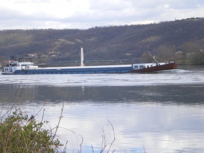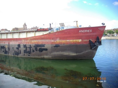 Le boot Andries. C'etait un petit gaboteur, a l'origine dans le grand Nord (pas le canal) mais le Nord de l'Europe.IL est arrive sur le Rhone voici qqs annees.Son proprio a l'epoque lui etait du Nord vers la frontiere Belge.Il s'est ensuite appele Metatron,il a etait vendu a Jojo (de l'El Verdugo, un 38 m) et de nouveau, il a reprit le nom d'Andries. Il fait 70 X 8,24. Je vous passe tous les details, et tous ce qu'il lui est arrive,Jojo avec beaucoup de tenacite et surtout du courage et beaucoup de merite a fait face .Maintenant il a des peanneaux roulants, avant c'etait des Mac Gregor,comme sur les Fluvios.Sur les photos l'on voit egalement l'Azimut (je vous l'ai deja montre le 23/2/09)