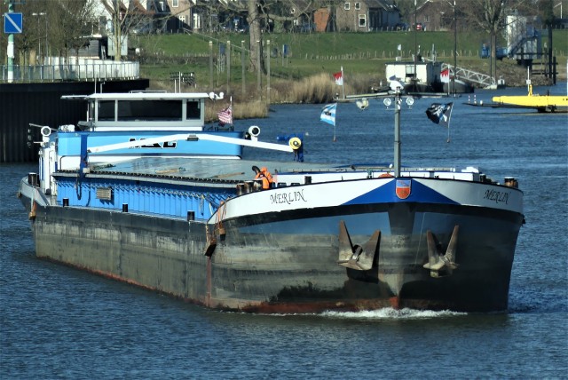 Merlin , 102,99 x 9,60 x 3,17 , 2135 ton , Bouwjaar 1981 , Werf Lanser, Sliedrecht ( Nederland ) en Koedood Dieselservice in Hendrik Ido Ambacht ( Nederland ) , 1379 pk Caterpillar en 440 pk Cummins – Hecon boegschroef , ex Thomar , ex Hendrik , ex Hendrik-B , ex Sownent , eigenaar F. Burger in Gräfendorf , ENI 02316359