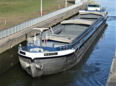 Gersom , 80,00 x 9,02 x 2,71 , 1258 ton , Bouwjaar 1943, Werf Meijer in Zaltbommel ( Nederland ) , 1000 pk Cummins en 230 pk DAF boegschroef , ex WTAG 162 , ex Stad Arnhem , ex Thermo 2 , ex Holland , ex Ram , ex Gero , ex Good Speed , eigenaar Vof. Guiljam – Wisse in Krabbendijke , ENI 06003762