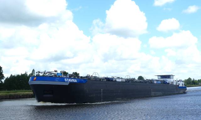 Stavria , 85,99 x 9,60 x 3,10 , 1598 ton , Bouwjaar 2009 , Werf Stocznia Malbo in Malczyce ( Polen ) en Breko, Papendrecht ( Nederland ) , 1278 pk Mitsubishi en 360 pk Electromotor – Verhaar Omega-Jet boegschroef , ex Paco , eigenaar Gebr. Groot BV in Stavoren , ENI 02333135